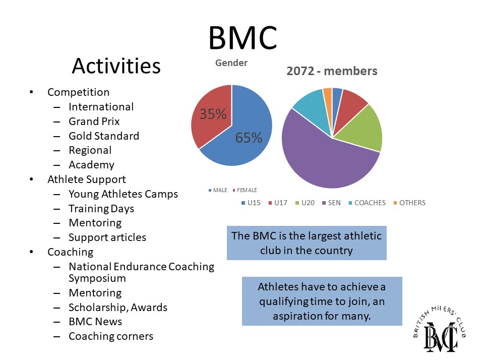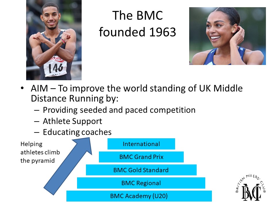 The BMC is the premier middle distance athletics club in the country. Through its racing program, training courses and coaching articles we aim to improve the world standing of UK Middle Distance running.