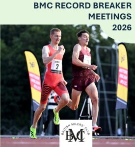 We are pleased to share the 2026 dates for our Record Breaker Series. 04/05/2026 Bannister Miles – Oxford 23/05/2026 Belfast 01/07/2026 Bracknell 15/07/2026 St Marys – Twickenham 18/08/2026 Tooting Record Breaker meetings are special BMC meetings, offering prize money for elite races but also catering for a wide range of abilities and ages. They frequently